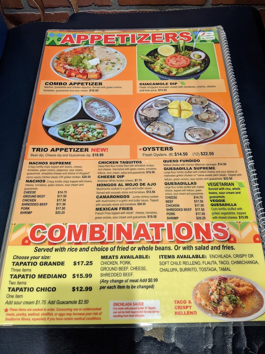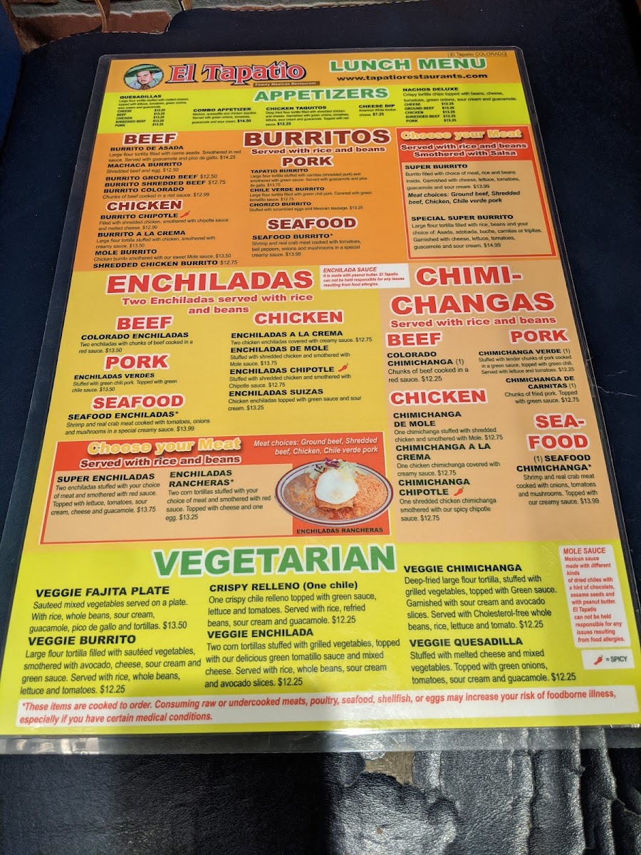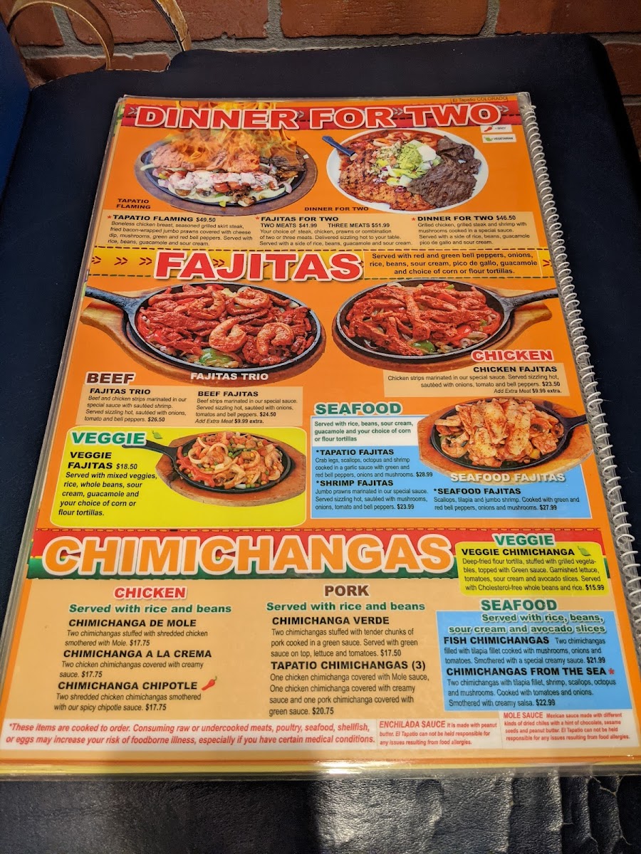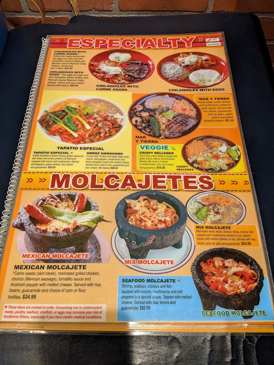 El Tapatio Menu
